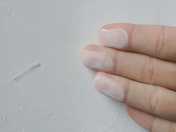 優質膩子粉:用手指輕輕地擦涂有高品質膩子粉的樣板表面,手指上十分干凈,膩子粉完全沒有產生掉粉的情況。