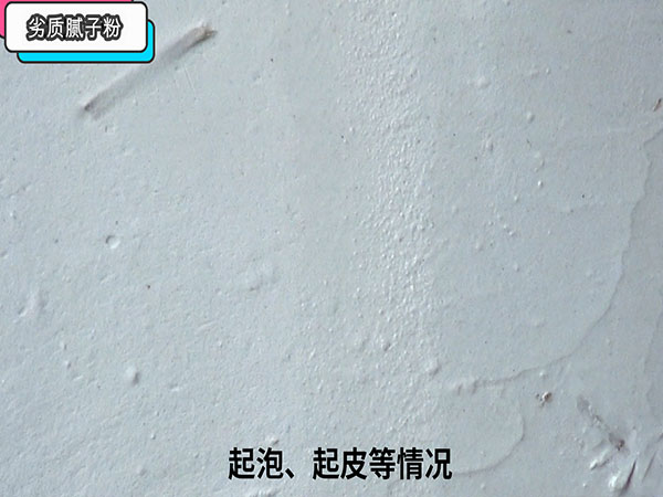 劣質膩子粉:劣質膩子粉樣板在經過水沖洗以后,會很快出現起泡、起皮等情況。