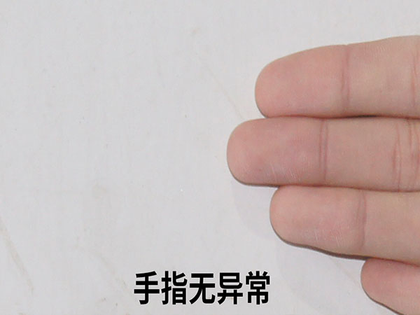 劣質膩子粉:用手指輕輕地擦過涂有劣質的膩子粉的樣板表面,手指上面沾有許多膩子粉。