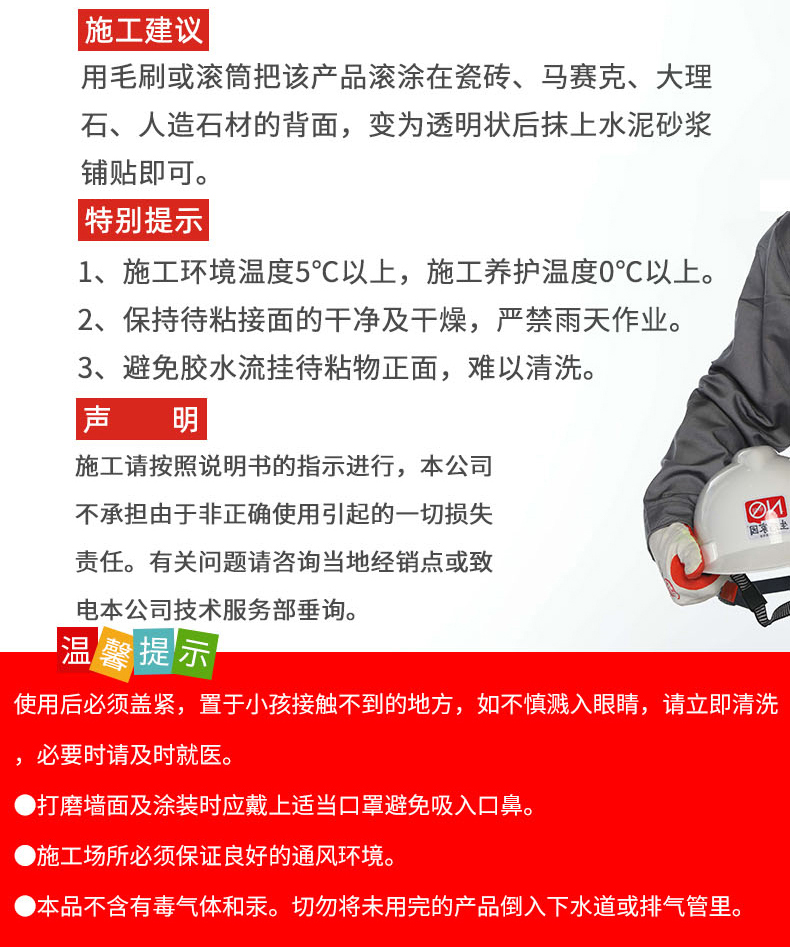 適用于室內(nèi)墻地面瓷磚、馬賽克、大理石、人造石材的安裝。