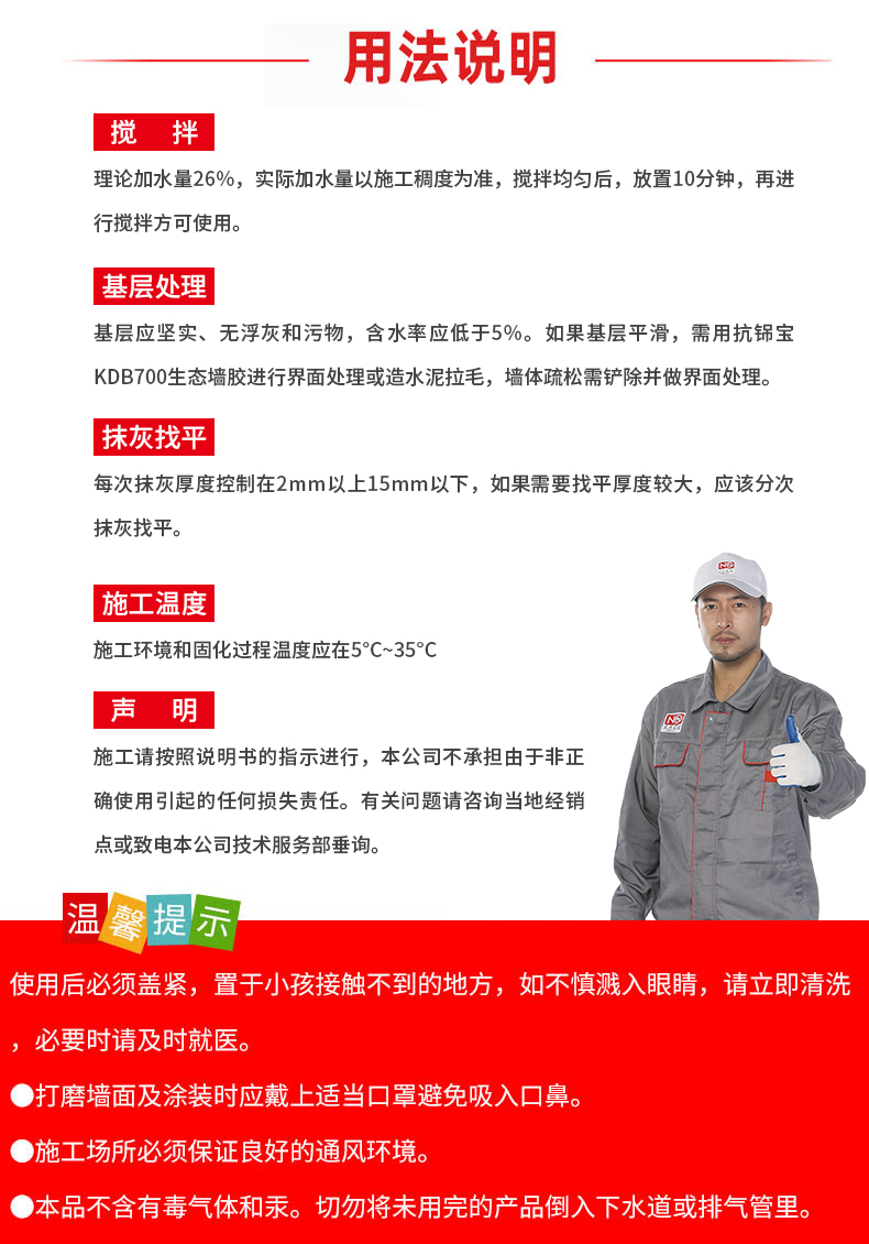 本品是由石膏、水洗砂、碳酸鈣及多種有機添加劑混合而成的新型內墻面基層抹灰材料。具有建筑石膏早強、快硬、質輕等優點,又具有施工和易性好、粘結強度高、不易空鼓和開裂的特點;具有呼吸功能,可調節室內空氣濕度,改善居室環境。